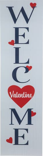 Accented with delightful red hearts, this beautifully crafted piece adds a touch of warmth to your Valentine s Day decor. Whether greeting guests or simply spreading the joy of the season, this heartfelt sign radiates love and welcomes all into your space. Product Features: Valentine s Day wall sign Reads "Welcome" in bold black lettering A heart is "o" in welcome Heart reads "Valentine" Accented with red hearts Comes ready to hang with D ring hangers Covered outdoor area or indoor use recommended Dimensions: 38"H x 10"W x .25"D Material(s): wood/metal