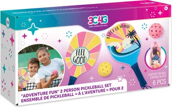 3C4G: ADVENTURE FUN 2 PERSON PICKLEBALL SET - FUN ON THE GO - Three Cheers For Girls - Play pickleball anywhere your heart desires! Light and easy to transport in the drawstring bag, this set is perfect for vacations, park days, and backyard fun alike. ABOUT THE GAME: Pickleball is a paddle sport that combines elements of tennis, badminton and ping-pong. It s appropriate for players of all ages and skill levels. Rules for pickleball are simple, making it a great introductory sport! EVERYTHING INCLUDED: This set includes everything your tween needs to have a blast: pickleball paddles, pickle balls, a drawstring bag, and simple instructions. SAFELY PLAY: The pickleball paddles have straps to ensure tweens stay safe when playing. GREAT GIFT IDEA: This set encourages being active and playing with others, making it the perfect gift for the tween in your life no matter the occasion! PERFECT FOR AGES 8+: Your tween will learn that being active is fun with this playful and super cute pickle ball set! CONTENTS: 2 pickleball paddles with safety strap, 2 pickleballs, 1 drawstring bag, 1 instruction sheet.