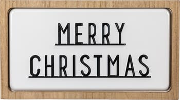 Celebrate the holiday season with a versatile "Merry Christmas" sign that brings a festive touch to any space. Featuring bold black lettering in a 3D design, this sign can be easily hung on a wall or displayed on a tabletop. Perfect for adding a warm, welcoming vibe to your home, it’s a stylish way to spread holiday cheer. Product Features: 3D design Reads “Merry Christmas” in black letters White background with a deep wooden frame For Indoor use only Dimensions: 7.25" H x 13 W x 2.5"D Material(s): wood/metal