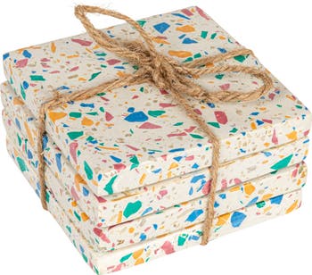 4-Piece Square Resin and Terrazzo Coasters, Multicolor