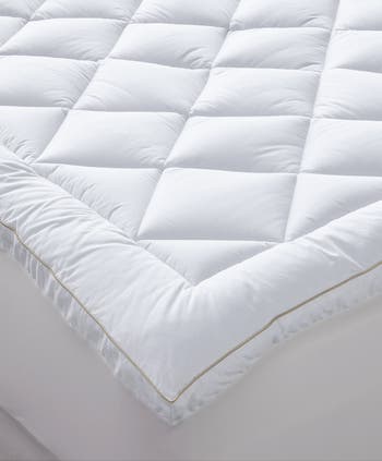 The 400-thread count, 100% cotton creates the plushest mattress pad that s sure to guarantee an ultra-comfortable night of sleep. The four-sided gusset construction and elastic bottom ensure a snug fit that prevents shifting. A quilted top creates luxurious comfort that will make it hard to avoid hitting “snooze” just to stay snuggled in a little longer!
