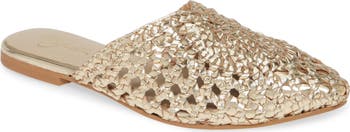 A breezy open weave brings eye-catching texture to a pointy-toe mule designed to pair easily with everyday looks.