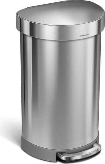 Flat back allows for easy placement against the wall and out of the way. Large capacity is ideal for busy areas around the home. Liner rim lifts up for easy access to the liner, then closes to grip and keep it neatly out of sight. The strong steel pedal is built to last, and lid shox technology ensures a smooth, silent close every time, the can s stainless steel surface is protected by an invisible silver-ion coating that resists fingerprints and germs. Our Code J custom fit liner fits this can perfectly — no bunching or slipping for a cleaner trash experience.