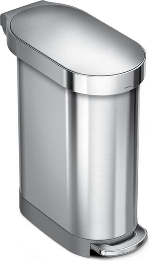 Space-efficient shape fits perfectly in tight spots, like between cabinets. Liner rim lifts up for easy access to the liner, then closes to grip and keep it neatly out of sight. The strong steel pedal is built to last, and lid shox technology ensures a smooth, silent close every time, the can s stainless steel surface is protected by an invisible silver-ion coating that resists fingerprints and germs. Our Code N custom fit liner fits this can perfectly — no bunching or slipping for a cleaner trash experience.