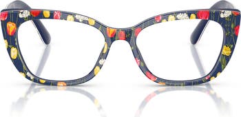 Retro-inspired cat-eye frames lend an elevated look to Italian-made glasses stamped with signature logos at the temples.