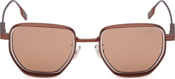 Angular, retro-inspired frames define these lightweight sunglasses designed with adjustable nose pads for a customized fit.