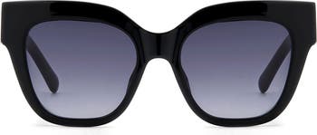 Chevron-textured hardware stands out at the hinges of bold sunglasses designed with cat-eye frames and gradient lenses for trend-savvy appeal.