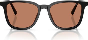 Signature logo hardware glints at the hinges of Italian-made sunglasses featuring a classic square profile and lightweight acetate frames.