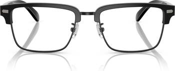 Contrasting logo accents at the temples highlight the sleek, angular frames of squared optical glasses perfect for updating your everyday look.