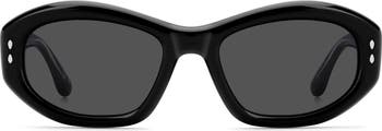 Shapely frames and a cat-eye profile distinguish acetate sunglasses accented with signature logos at the temples.