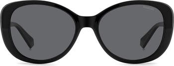 Sparkling rhinestones add to the retro glamour of wide-butterfly sunglasses etched with subtle logo details on the temples and polarized lenses.