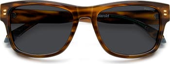 Beveled temples and subtle hardware bring striking dimension to angular sharp square sunglasses featuring polarized lenses for color-true clarity.