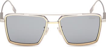 Bold square navigator frames add a retro-inspired aesthetic to Italian-made sunglasses designed with adjustable nose pads for a customized fit.