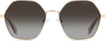 Angular square frames add a bold aesthetic to gradient sunglasses featuring glare-reducing polarized lenses and adjustable nose pads.