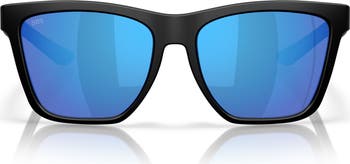 Be ready for every beach adventure in these rectangular sunglasses built with mirrored, polarized lenses that offer color-enhancing vision.