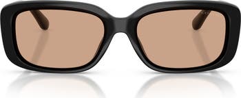 The brand s iconic logo adds signature allure to the temples of full-coverage sunglasses made from lightweight plastic and shaped in a sleek rectangular profile.