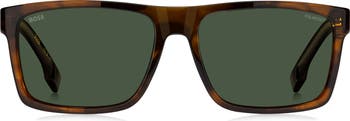 Enjoy the minimalist appeal of these sleek rectangular sunglasses fitted with glare-reducing polarized lenses that make them perfect for wearing on bright, sunny days.