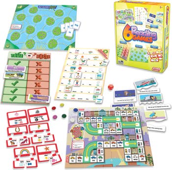 This set of educational games and activities is designed for teaching reading, including sight words, tricky words, compound words, reading for meaning, sentence matching and sentence substitution. Children will love learning word recognition and reading skills to win each game. Contents: 2 board games, 2 matching games, word puzzles, sentence puzzles, die and counters.