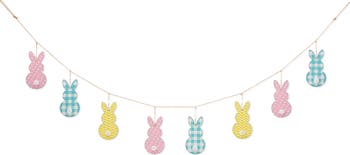 Decorate for the holiday season with rustic accents that keep your space festive and fun! Metal Bunny Garland features a jute string with shaped bunnies. Hang this garland strand on your mantel, or place it as part of a centerpiece on a table for a fabulous, festive look!