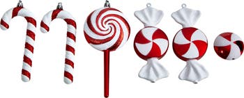 7-in Assorted Candy Holiday Christmas Deluxe Shatterproof Ornament Set of 6