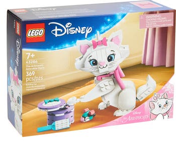 Marie, the adorable and adventurous middle kitten from Disney s The Aristocats, gets her own LEGO® treatment with this fun 369-piece set. The feline figure s adjustable design lets you lift her paws, move her ears and pose her in a seated position. In addition to a removable bow, your set also includes a hairbrush, mouse, goldfish, and bonus gift box with a lid.