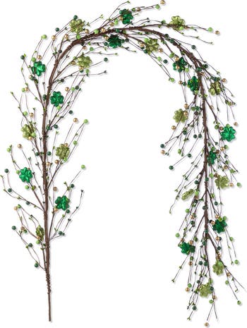 This 72"L St. Patrick s Garland features twisted branches adorned with green shamrocks, gold beads, and small green berries. It s perfect to bring a festive Irish touch to your home decor.