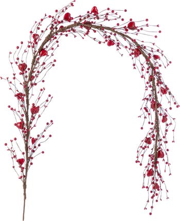 This 72"L Valentine s Red Berry Garland is a charming and festive decoration. It features twisted branches adorned with red berries and heart shaped accents, perfect for draping across mantels, stairways, or doorways to add a romantic Valentine s Day touch to your home.