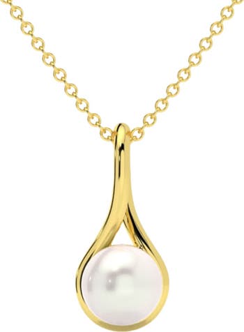 7mm Pearl Solitaire Pendant 14k Gold 18" Necklace 18mm Tall