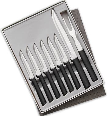- Includes six Serrated Steak Knives, Slicer Knife, and Carving Fork