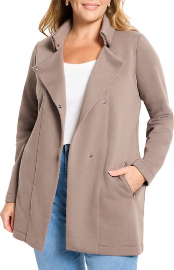 A cozy layering piece for chilly days, this softly structured double-knit jacket is framed by a notched lapels and welt pockets for a polished touch.