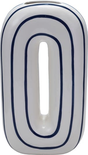 This Ceramic Abstract Vase with stripes in a classic white and navy color palette perfectly blends sophistication and functionality. Its bold striped design and elegant form make it a standout addition to any room, effortlessly enhancing Coastal, Farmhouse, French Country, and Garden decor styles. Ideal for showcasing fresh flowers or dried arrangements or as a stylish standalone piece, this vase is crafted from durable dolomite that is durable and easy to clean. It measures 7.25 inches in length, 3 inches in width, and 12.5 inches in height, making it a versatile and stylish choice for any home.