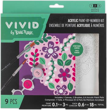 MINI PAINT BY NUMBER: FLOWER HEART - Fall in love with crafting all over again with the Flower Heart Mini Paint-by-Number Kit! Featuring a vibrant blooming bouquet of florals arranged in a charming heart shape, this mini masterpiece is perfect for gifting, decorating, or simply enjoying a relaxing art session. The 6" x 6" stretched canvas offers just the right size for a sweet and satisfying project. With easy-to-follow numbered sections and vivid acrylic paints, this kit delivers a colorful, high-impact finish—no experience needed. Whether for Valentine’s Day, Mother’s Day, or just because, this floral heart makes a meaningful handmade addition to any space. THOUGHTFUL GIFT IDEA: Makes a heartfelt present or keepsake craft for birthdays, holidays, or a creative night in. SAFE NON-TOXIC: Conforms to ASTM D-4236. INCLUDES: 1 canvas, 2 paintbrushes, 6 acrylic paint pots (Each: 0.1oz/3ml - Total: 0.6oz/ 18ml), and instructions. PAINTING STEPS: 1) Choose your first color. 2) Paint the matching numbered section. 3) Wash dry the brush. 4) Repeats steps 1-3. 5) Display your masterpiece.