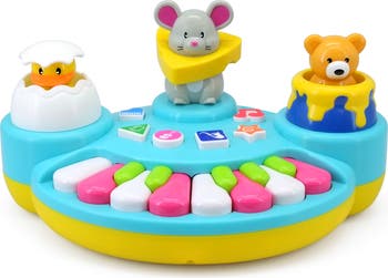 ACTIVITY PIANO: MUSICAL BUDDIES - Fun piano with cute animals that pop and move for endless fun and giggles! Unlock a world of musical joy with our Activity Piano: Musical Buddies! Dive into a whimsical adventure where adorable animals pop and dance as you play. Let your imagination soar as you compose melodies on chunky piano keys designed for little hands. Explore the sounds of three delightful musical instruments and bring your favorite tunes to life! Pre-Recorded Demo Songs: Enjoy listening to sweet and catchy demo songs pre-recorded on the piano, providing inspiration and guidance for budding musicians as they learn and play along. Watch as Duckie and Teddy Bear pop up, adding playful sounds to your compositions, or press the tiny mouse for cute squeaks that will surely bring giggles. Encourage early exposure to the wonders of music in a way that captivates and delights. With the Activity Piano: Musical Buddies, the journey of musical exploration becomes a thrilling adventure, offering endless opportunities for creativity, learning, and joy for young children. With these features, the Activity Piano: Musical Buddies offers endless opportunities for musical exploration, creativity, and joyful learning for young children.