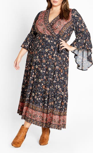 Add a bit of boho chic to your maxi dress collection with a wrap-bodice maxi dress offered in a charming mix of prints and perfected with a pair of pockets.