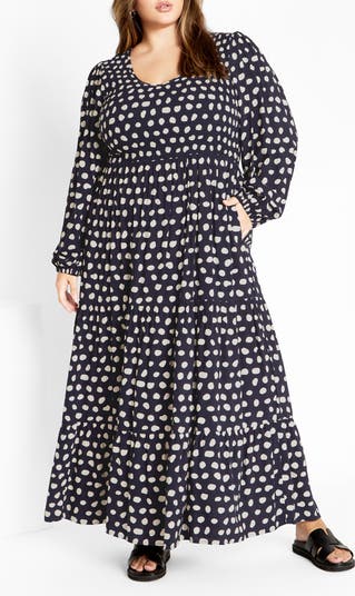 This maxi dress brings bohemian ease to the forefront with a fitted bodice, layered skirt and a print that adds personality to every step.