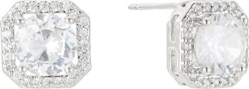 A dazzling display of one sparkly stone surrounded by smaller stones. Make a statement with these studs, designed for the modern bride who wants to shine bright on her special day.