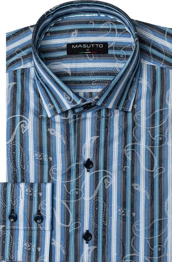 A jacquard grid adds subtle dimension to a woven-cotton sport shirt cut for a modern shape-fit that looks good tucked or untucked.