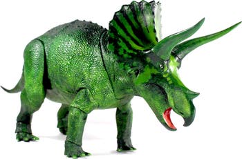 BEASTS OF THE MESOZOIC: ADULT TRICERATOPS STEELHORN (LIMITED EDITION) - AKA (Three Horned Face) - 1/18th scale Dinosaur Action Figure. This highly-detailed collectible figure measures approximately 18" long by 11" in height and features 20 points of articulation. Steelhorn is a Limited Edition and is the first release associated with the upcoming Cyberzoic action figure line. Also included are interchangeable green and silver horns, and features unique vintage-style packaging with original artwork by Nate Baertsch. DINOSAUR FACTS: Length: up to 9m (29.5ft) long. Location: Hell Creek Formation, Montana, USA. Time period: Late Cretaceous 68 m.y.a. Named By: Marsh, Charles O. 1889. One of the best-known dinosaurs of all time, Triceratops was among the largest Ceratopsians. Often viewed as defensive weapons, its frill and horns are now more associated with species identification, courtship and display. CREATIVE BEAST STUDIO: Discover captivating and scientifically accurate dinosaur models. Our extensive collection is perfect for dinosaur enthusiasts like yourself seeking authentic and life-like collectibles. Dinosaur action figure collectibles with maximum articulation is something that we take pride in creating. We invite you to immerse yourself in a forgotten world of beauty and strong organic forms. The Beasts of the Mesozoic toy line began as a Kickstarter campaign in 2016 for the Raptor Series. There have been two more successfully funded Kickstarter campaigns for BotM since then with the Ceratopsian Series (2019) and Tyrannosaur Series (2021). Beasts of the Mesozoic is a scientifically accurate toy line celebrating prehistoric natural history in a realistic and interactive medium. Recommended for ages 15 and up.