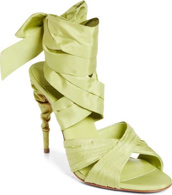 A vibrantly hued scarf-like tie wraps elegantly around the ankle and stiletto heel of this eveningwear sandal inspired by the captivating world of the circus and the performing arts. Christian Louboutin s iconic red sole secures the style s place as a paragon of modern glamour.