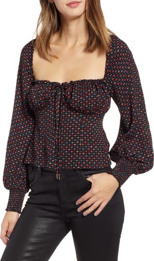 Boast feminine charm in this sweetly smocked top styled with a square neck and open back.