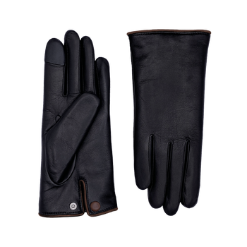 Agatha is a 100% lambskin glove with a cashmere lining, subtle contrast piping and a snap at the wrist.
