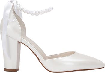 Featuring an elegant closed-toe front and delicate pearl ankle strap options, these bridal heels seamlessly combine sophistication with a touch of romance. The 3.75-inch (approximately 9.5 cm) bridal block heels add stature, exuding a regal poise for your grand entrance. The shoes showcase a graceful ribbon adorned with pearls, forming ankle straps, with a charming tied ribbon detail visible at the back. Handcrafted with care and passion from luxurious vegan leather or velvet options (depending on the color you choose), you can embrace your wedding day in comfort and style. These wedding heels are here to witness and support every step of your journey. Box Contents: Your package will include 2 distinct sets of Ankle Straps: 1 x Ribbon Ankle Strap adorned with Pearls 1 x The standard Ankle strap for the sandals. (both can be seen in the pictures) These shoes are designed to fit true to size, so we recommend ordering your regular size.