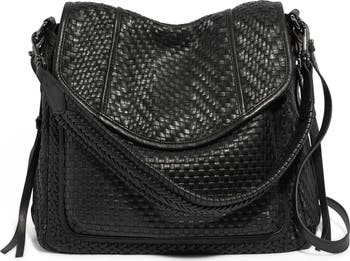 Whipstitched accents and woven texture lend a vintage-inspired look to this slouchy leather bag that converts from shoulder style to crossbody for versatility.