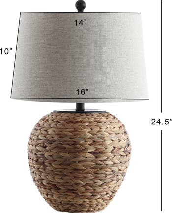 Whether your home is Coastal, Rustic, or Traditional, the classic shape of our basket lamp fits right in. Woven by hand of natural dried water hyacinth fibers on a sturdy metal frame. Topped with a modern drum shade covered in beige-toned linen.