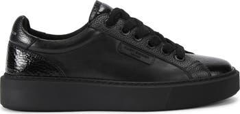 Smooth and embossed leather panels create textural interplay that works handsomely on this monochrome sneaker.