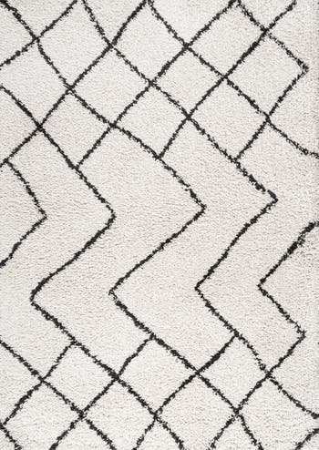 Inspired by vintage Beni Ourain Moroccan rugs, our soft and fluffy shag yarns make it easy to go barefoot. The classic Moroccan pattern has deep gray diamonds on a field of ivory. Anchor your Bohemian space; add softness to a bedroom, living room, or cozy reading nook; this is a shag rug with timeless style.