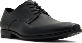 A comfortably cushioned leather derby offers modern sophistication in a sleek plain-toe silhouette with subtle side perforations.