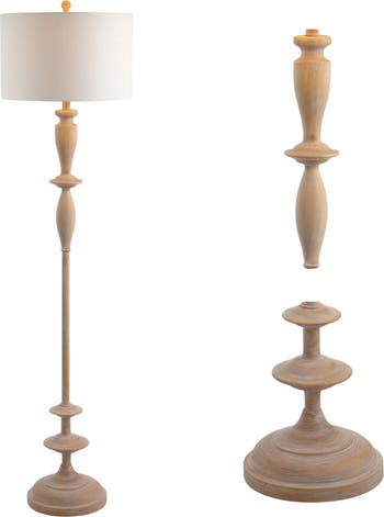 - Simple and understated, this turned wood-finished floor lamp stuns in any setting