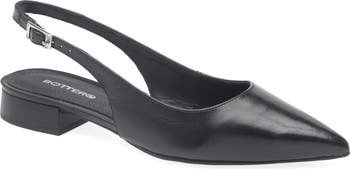 A pointy toe furthers the streamlined aesthetic of a Brazilian-made flat shaped from rich leather and secured with an adjustable buckle closure.