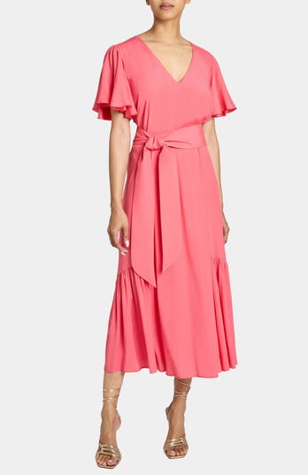 - Ruffled Midi Dress in Silk Crepe de Chine